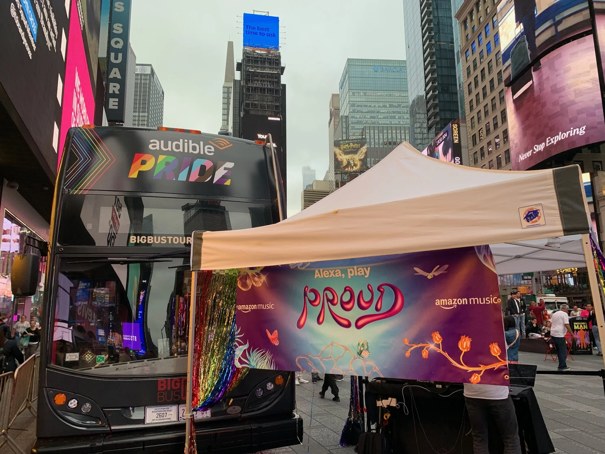 Check out some of our most colorful work for Audible's Pride march team, including walking banners, t-shirts and sunglasses, and public giveaways including fans, flags, and headbands, and most importantly our Pride Bus! We also created assets to help promote Audible's Pride content slate, including digital landing page banners for web and mobile and 3-month free download cards to be handed out during the march.
